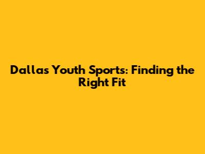 Dallas Youth Sports: Finding The Right Fit