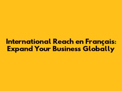 Are you ready to take your business to the next level and expand internationally? If so, understanding and utilizing international reach in French is a crucial step. In today's interconnected world, the ability to communicate and conduct business in multiple languages opens up vast opportunities for growth and market penetration. French, being one of the most widely spoken languages globally, presents a significant potential for businesses looking to broaden their horizons. This article delves into the importance of leveraging French for international expansion, providing insights and strategies to help you succeed in French-speaking markets.