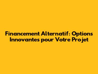 Financement Alternatif: Options Innovantes Pour Votre Projet