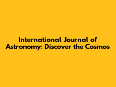 International Journal Of Astronomy: Discover The Cosmos