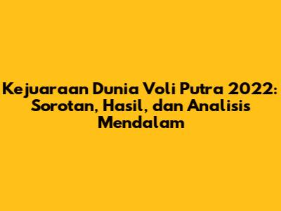 Selamat datang, guys, di panduan mendalam tentang Kejuaraan Dunia Voli Putra 2022! Kalau kalian penggila voli, pasti sudah gak sabar kan buat tahu lebih banyak tentang turnamen bergengsi ini? Kita bakal bedah habis semua aspek, mulai dari hasil pertandingan yang bikin deg-degan, jadwal yang padat merayap, tim-tim kuat yang unjuk gigi, pemain-pemain bintang yang bersinar, sampai analisis mendalam tentang strategi dan performa mereka. Jadi, siap-siap buat menyelami dunia voli yang seru ini, ya!