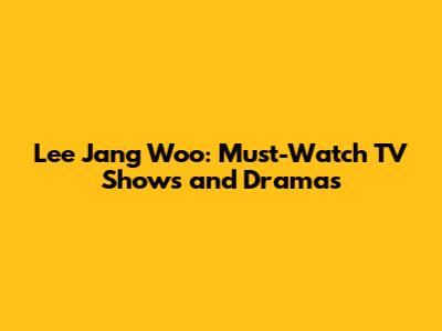 Lee Jang Woo: Must-Watch TV Shows And Dramas