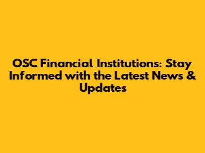 OSC Financial Institutions: Latest News & Updates