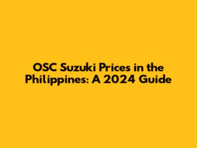 OSC Suzuki Prices In The Philippines: A 2024 Guide