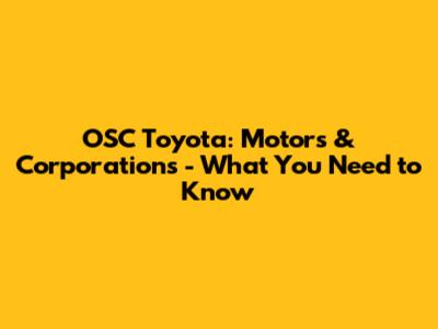 OSC Toyota: Motors & Corporations - What You Need To Know