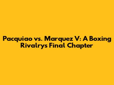Pacquiao Vs. Marquez V: A Boxing Rivalry's Final Chapter