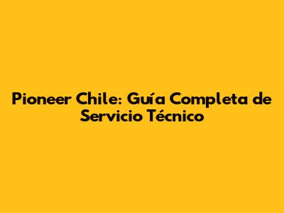 Pioneer Chile: Guía Completa De Servicio Técnico