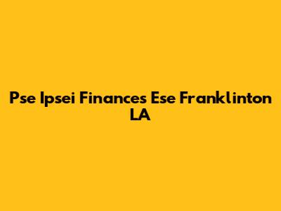 Pse Ipsei Finances Ese: Your Guide To Franklinton, LA