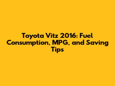 Understanding Toyota Vitz 2016 Fuel Consumption