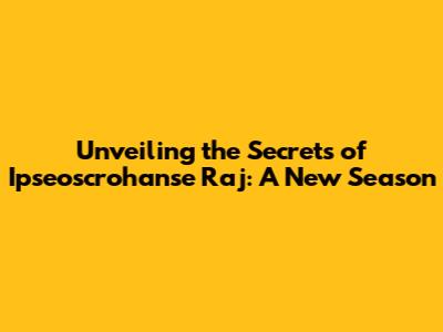Unveiling The Secrets Of Ipseoscrohanse Raj: A New Season